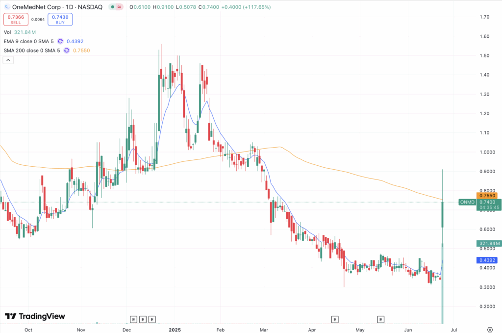 OneMedNet (ONMD): This stock has seen a remarkable 118% surge, driven by strong volume and market interest. It’s definitely a breakout candidate.